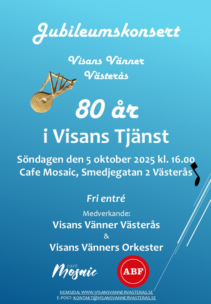 Jubileumskonsert – Visans Vänner Västerås ”80 år i Visans Tjänst”